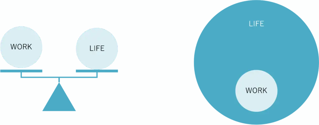 ワークライフバランスは「work(仕事)」と「life(生活)」が天秤のように釣り合っているイメージではありません。そもそも考えてみれば、これはおかしなイメージです。仕事は生活の一部に過ぎません。一部が全体と釣り合うことはないのです。