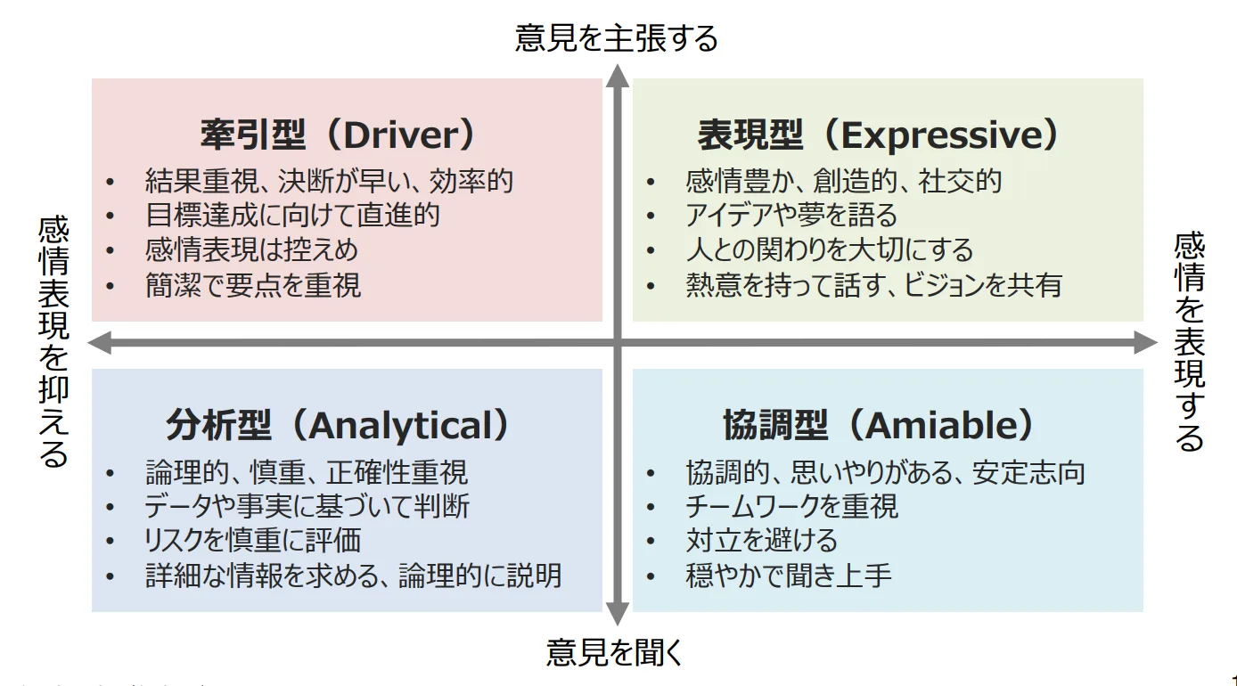 そこで役立つのが、人のタイプを大まかに分類し、自分のタイプと相手のタイプに合わせてコミュニケーションの取り方を調整するという考え方です。今回は、そうしたタイプ別分類のひとつである「ソーシャルスタイル診断」をご紹介します。