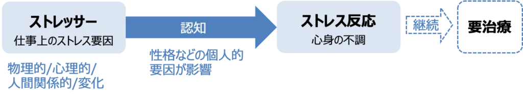 ストレッサーが即座にストレス反応になるわけではありません。ストレッサーからストレス反応が生まれるまでの間には「認知」というプロセスがあります。つまり、そのストレッサーを「どのように捉えているか」「どう解釈しているか」ということです。この解釈は本人の性格、価値観、心情などが影響を及ぼすため、個人差が生じます。